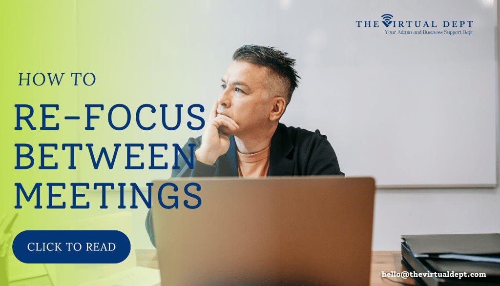 When we return from a meeting, it’s common to feel listless and unfocused, and end up engaging in mindless tasks as we try to figure out what to do next. Here are 3 ways you can regain your focus between meetings: